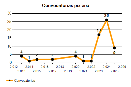 | 26 Convocatorias | 9 Convocatorias | -65,38% |