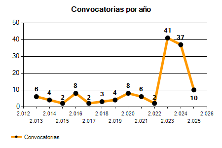| 37 Convocatorias | 10 Convocatorias | -72,97% |