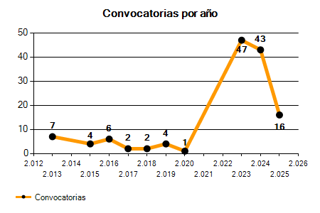 43 Convocatorias | 16 Convocatorias | -62,79% |