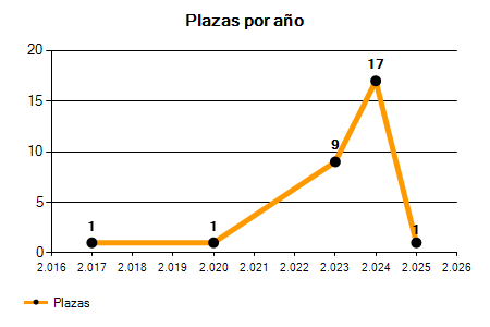 En los siguientes gráficos se puede ver la evolución del número de convocatorias y plazas convocadas para la profesión de Auxiliar administrativo en Soria de los últimos años pudiéndose observar un crecimiento y una caída del 0,00% desde el año 2017 hasta el 2025 en número de convocatorias y un crecimiento y una caída del 0,00% en número de plazas convocadas.