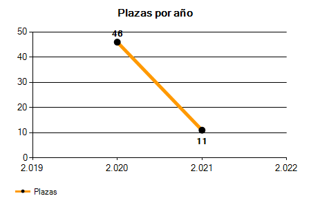 En los siguientes gráficos se puede ver la evolución del número de convocatorias y plazas convocadas para la profesión de Auxiliar Administrativo Universidad en Córdoba de los últimos años pudiéndose observar una caída del 100,00% desde el año 2020 hasta el 2026 en número de convocatorias y una caída del 100,00% en número de plazas convocadas.