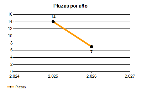 En los siguientes gráficos se puede ver la evolución del número de convocatorias y plazas convocadas para la profesión de Auxiliar de Carreteras en Segovia de los últimos años pudiéndose observar una caída del 50,00% desde el año 2025 hasta el 2026 en número de convocatorias y una caída del 50,00% en número de plazas convocadas.
