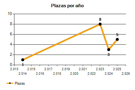 En los siguientes gráficos se puede ver la evolución del número de convocatorias y plazas convocadas para la profesión de Auxiliar de clínica en Balears de los últimos años pudiéndose observar un crecimiento y una caída del 0,00% desde el año 2014 hasta el 2025 en número de convocatorias y un crecimiento del 400,00% en número de plazas convocadas.