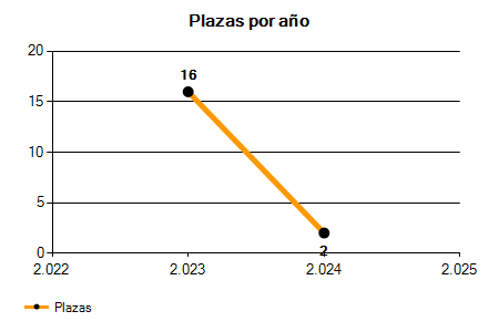 En los siguientes gráficos se puede ver la evolución del número de convocatorias y plazas convocadas para la profesión de Auxiliar de Control de Residuos en Barcelona de los últimos años pudiéndose observar una caída del 100,00% desde el año 2023 hasta el 2025 en número de convocatorias y una caída del 100,00% en número de plazas convocadas.