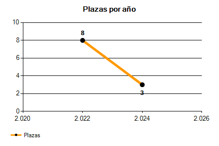 En los siguientes gráficos se puede ver la evolución del número de convocatorias y plazas convocadas para la profesión de Auxiliar de Control y Mantenimiento de Edificios Públicos en Madrid de los últimos años pudiéndose observar una caída del 100,00% desde el año 2022 hasta el 2025 en número de convocatorias y una caída del 100,00% en número de plazas convocadas.