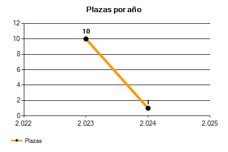 En los siguientes gráficos se puede ver la evolución del número de convocatorias y plazas convocadas para la profesión de Auxiliar de geriatría en Palmas,Las de los últimos años pudiéndose observar una caída del 100,00% desde el año 2023 hasta el 2025 en número de convocatorias y una caída del 100,00% en número de plazas convocadas.
