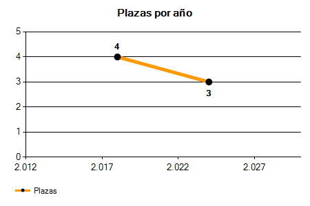 En los siguientes gráficos se puede ver la evolución del número de convocatorias y plazas convocadas para la profesión de Auxiliar de Gestión, Inspección y Recaudación Tributaria Local en Salamanca de los últimos años pudiéndose observar una caída del 100,00% desde el año 2018 hasta el 2025 en número de convocatorias y una caída del 100,00% en número de plazas convocadas.