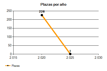 En los siguientes gráficos se puede ver la evolución del número de convocatorias y plazas convocadas para la profesión de Auxiliar de Gestión en Málaga de los últimos años pudiéndose observar una caída del 50,00% desde el año 2020 hasta el 2025 en número de convocatorias y una caída del 99,56% en número de plazas convocadas.