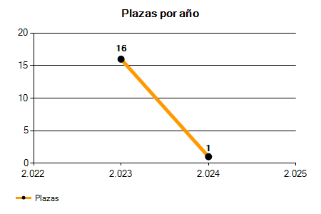 En los siguientes gráficos se puede ver la evolución del número de convocatorias y plazas convocadas para la profesión de Auxiliar de Mantenimiento en Granada de los últimos años pudiéndose observar una caída del 100,00% desde el año 2023 hasta el 2025 en número de convocatorias y una caída del 100,00% en número de plazas convocadas.
