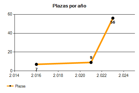 En los siguientes gráficos se puede ver la evolución del número de convocatorias y plazas convocadas para la profesión de Auxiliar de Recaudación en Cádiz de los últimos años pudiéndose observar una caída del 100,00% desde el año 2016 hasta el 2025 en número de convocatorias y una caída del 100,00% en número de plazas convocadas.