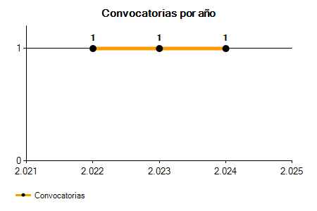 En los siguientes gráficos se puede ver la evolución del número de convocatorias y plazas convocadas para la profesión de Auxiliar de Tecnologías de la Información y la Comunicación TIC en Almería de los últimos años pudiéndose observar una caída del 100,00% desde el año 2022 hasta el 2025 en número de convocatorias y una caída del 100,00% en número de plazas convocadas.