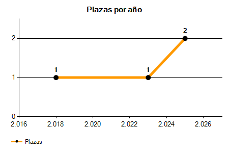 En los siguientes gráficos se puede ver la evolución del número de convocatorias y plazas convocadas para la profesión de Auxiliar de Turismo en Cáceres de los últimos años pudiéndose observar un crecimiento y una caída del 0,00% desde el año 2018 hasta el 2025 en número de convocatorias y un crecimiento del 100,00% en número de plazas convocadas.