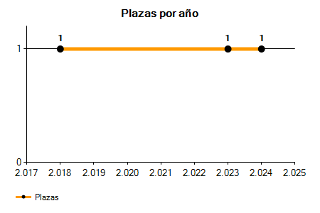En los siguientes gráficos se puede ver la evolución del número de convocatorias y plazas convocadas para la profesión de Auxiliar de Turismo en Castellón de la Plana de los últimos años pudiéndose observar una caída del 100,00% desde el año 2018 hasta el 2025 en número de convocatorias y una caída del 100,00% en número de plazas convocadas.