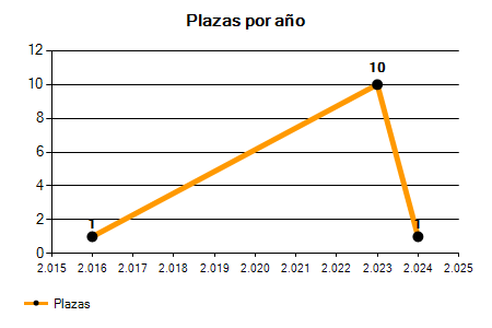 En los siguientes gráficos se puede ver la evolución del número de convocatorias y plazas convocadas para la profesión de Auxiliar de Turismo en Tarragona de los últimos años pudiéndose observar una caída del 100,00% desde el año 2016 hasta el 2025 en número de convocatorias y una caída del 100,00% en número de plazas convocadas.