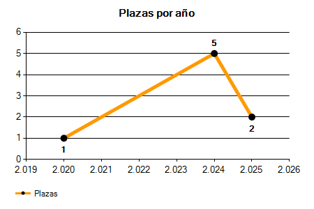 En los siguientes gráficos se puede ver la evolución del número de convocatorias y plazas convocadas para la profesión de Auxiliar de Turismo en Valencia de los últimos años pudiéndose observar un crecimiento y una caída del 0,00% desde el año 2020 hasta el 2025 en número de convocatorias y un crecimiento del 100,00% en número de plazas convocadas.
