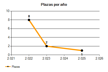 En los siguientes gráficos se puede ver la evolución del número de convocatorias y plazas convocadas para la profesión de Auxiliar de Vías y Obras en Valencia de los últimos años pudiéndose observar un crecimiento y una caída del 0,00% desde el año 2022 hasta el 2025 en número de convocatorias y una caída del 87,50% en número de plazas convocadas.