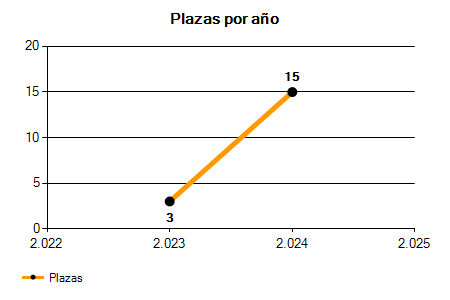 En los siguientes gráficos se puede ver la evolución del número de convocatorias y plazas convocadas para la profesión de Auxiliar de Vivienda Tutelada en Toledo de los últimos años pudiéndose observar una caída del 100,00% desde el año 2023 hasta el 2025 en número de convocatorias y una caída del 100,00% en número de plazas convocadas.
