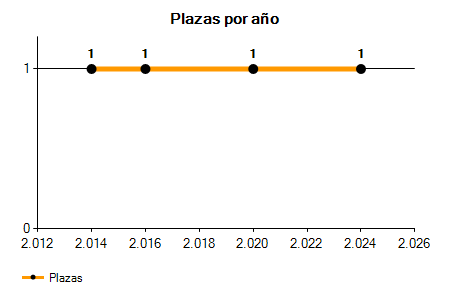 En los siguientes gráficos se puede ver la evolución del número de convocatorias y plazas convocadas para la profesión de Auxiliar notificador en Coruña,A de los últimos años pudiéndose observar una caída del 100,00% desde el año 2014 hasta el 2025 en número de convocatorias y una caída del 100,00% en número de plazas convocadas.