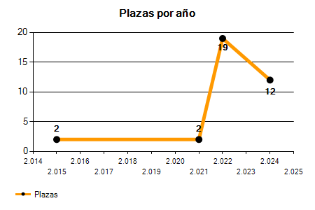 En los siguientes gráficos se puede ver la evolución del número de convocatorias y plazas convocadas para la profesión de Ayudante de oficio en Balears de los últimos años pudiéndose observar una caída del 100,00% desde el año 2015 hasta el 2025 en número de convocatorias y una caída del 100,00% en número de plazas convocadas.