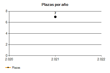 En los siguientes gráficos se puede ver la evolución del número de convocatorias y plazas convocadas para la profesión de Ayudante de Residencia/Servicios en Sevilla de los últimos años pudiéndose observar una caída del 100,00% desde el año 2021 hasta el 2025 en número de convocatorias y una caída del 100,00% en número de plazas convocadas.