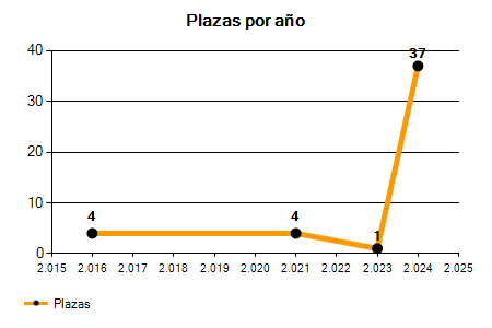 En los siguientes gráficos se puede ver la evolución del número de convocatorias y plazas convocadas para la profesión de Bombero/a-Conductor/a en Sevilla de los últimos años pudiéndose observar una caída del 100,00% desde el año 2016 hasta el 2025 en número de convocatorias y una caída del 100,00% en número de plazas convocadas.