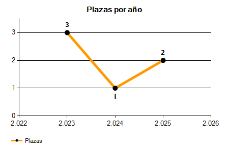 En los siguientes gráficos se puede ver la evolución del número de convocatorias y plazas convocadas para la profesión de Brigada de obras en Girona de los últimos años pudiéndose observar una caída del 66,67% desde el año 2023 hasta el 2025 en número de convocatorias y una caída del 33,33% en número de plazas convocadas.
