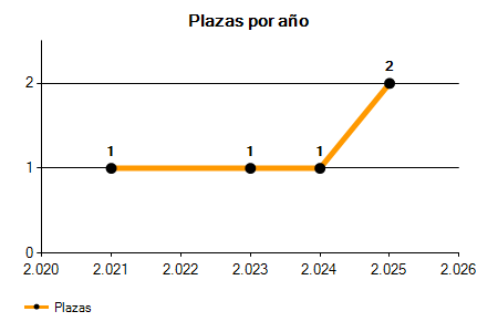 En los siguientes gráficos se puede ver la evolución del número de convocatorias y plazas convocadas para la profesión de Brigada de obras en Lleida de los últimos años pudiéndose observar un crecimiento del 100,00% desde el año 2021 hasta el 2025 en número de convocatorias y un crecimiento del 100,00% en número de plazas convocadas.