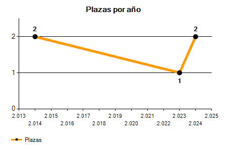En los siguientes gráficos se puede ver la evolución del número de convocatorias y plazas convocadas para la profesión de Capataz en Alicante de los últimos años pudiéndose observar una caída del 100,00% desde el año 2014 hasta el 2025 en número de convocatorias y una caída del 100,00% en número de plazas convocadas.