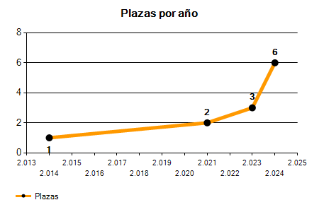 En los siguientes gráficos se puede ver la evolución del número de convocatorias y plazas convocadas para la profesión de Capataz en Cádiz de los últimos años pudiéndose observar una caída del 100,00% desde el año 2014 hasta el 2025 en número de convocatorias y una caída del 100,00% en número de plazas convocadas.