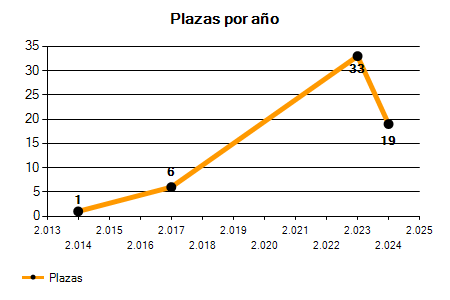 En los siguientes gráficos se puede ver la evolución del número de convocatorias y plazas convocadas para la profesión de Capataz en Málaga de los últimos años pudiéndose observar una caída del 100,00% desde el año 2014 hasta el 2025 en número de convocatorias y una caída del 100,00% en número de plazas convocadas.