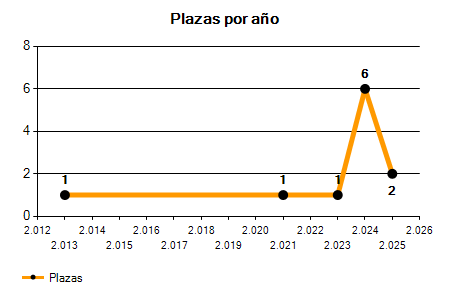 En los siguientes gráficos se puede ver la evolución del número de convocatorias y plazas convocadas para la profesión de Capataz en Valencia de los últimos años pudiéndose observar un crecimiento del 100,00% desde el año 2013 hasta el 2025 en número de convocatorias y un crecimiento del 100,00% en número de plazas convocadas.