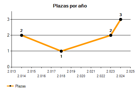 En los siguientes gráficos se puede ver la evolución del número de convocatorias y plazas convocadas para la profesión de Carpintero en Albacete de los últimos años pudiéndose observar una caída del 100,00% desde el año 2014 hasta el 2025 en número de convocatorias y una caída del 100,00% en número de plazas convocadas.