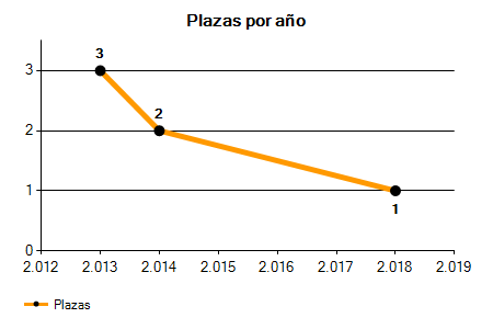 En los siguientes gráficos se puede ver la evolución del número de convocatorias y plazas convocadas para la profesión de Carpintero en Barcelona de los últimos años pudiéndose observar una caída del 100,00% desde el año 2013 hasta el 2025 en número de convocatorias y una caída del 100,00% en número de plazas convocadas.