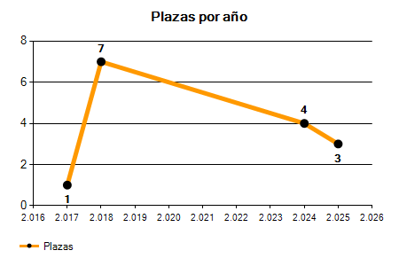 En los siguientes gráficos se puede ver la evolución del número de convocatorias y plazas convocadas para la profesión de Carpintero en Murcia de los últimos años pudiéndose observar un crecimiento del 200,00% desde el año 2017 hasta el 2025 en número de convocatorias y un crecimiento del 200,00% en número de plazas convocadas.