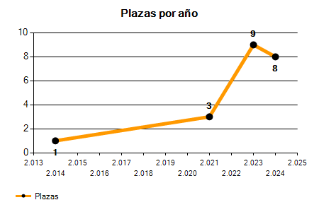 En los siguientes gráficos se puede ver la evolución del número de convocatorias y plazas convocadas para la profesión de Cocinero en Cádiz de los últimos años pudiéndose observar una caída del 100,00% desde el año 2014 hasta el 2025 en número de convocatorias y una caída del 100,00% en número de plazas convocadas.