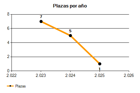 En los siguientes gráficos se puede ver la evolución del número de convocatorias y plazas convocadas para la profesión de Cocinero en Zamora de los últimos años pudiéndose observar una caída del 85,71% desde el año 2023 hasta el 2025 en número de convocatorias y una caída del 85,71% en número de plazas convocadas.