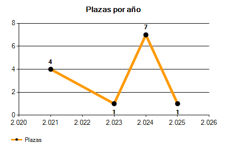 En los siguientes gráficos se puede ver la evolución del número de convocatorias y plazas convocadas para la profesión de Conductor/a de Maquinaria de Obras Públicas y Vehículos en Ourense de los últimos años pudiéndose observar un crecimiento y una caída del 0,00% desde el año 2021 hasta el 2025 en número de convocatorias y una caída del 75,00% en número de plazas convocadas.