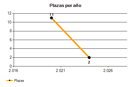 En los siguientes gráficos se puede ver la evolución del número de convocatorias y plazas convocadas para la profesión de Conductor de Residuos en Coruña,A de los últimos años pudiéndose observar una caída del 100,00% desde el año 2020 hasta el 2025 en número de convocatorias y una caída del 100,00% en número de plazas convocadas.