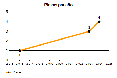 En los siguientes gráficos se puede ver la evolución del número de convocatorias y plazas convocadas para la profesión de Conductor Mecánico de Grúa en Albacete de los últimos años pudiéndose observar una caída del 100,00% desde el año 2016 hasta el 2025 en número de convocatorias y una caída del 100,00% en número de plazas convocadas.