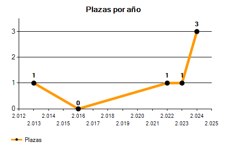 En los siguientes gráficos se puede ver la evolución del número de convocatorias y plazas convocadas para la profesión de Conductor en Teruel de los últimos años pudiéndose observar una caída del 100,00% desde el año 2013 hasta el 2025 en número de convocatorias y una caída del 100,00% en número de plazas convocadas.