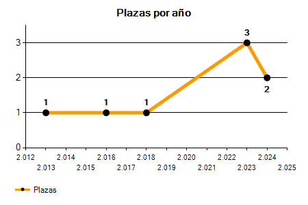 En los siguientes gráficos se puede ver la evolución del número de convocatorias y plazas convocadas para la profesión de Coordinador en Guipúzcoa de los últimos años pudiéndose observar una caída del 100,00% desde el año 2013 hasta el 2025 en número de convocatorias y una caída del 100,00% en número de plazas convocadas.