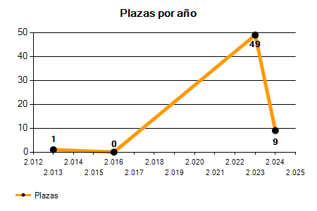 En los siguientes gráficos se puede ver la evolución del número de convocatorias y plazas convocadas para la profesión de Cuidador en Santa Cruz de Tenerife de los últimos años pudiéndose observar una caída del 100,00% desde el año 2013 hasta el 2025 en número de convocatorias y una caída del 100,00% en número de plazas convocadas.