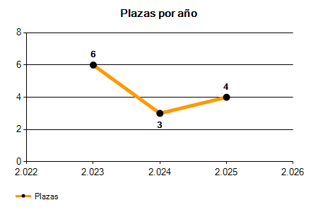 En los siguientes gráficos se puede ver la evolución del número de convocatorias y plazas convocadas para la profesión de Cuidador en Valencia de los últimos años pudiéndose observar una caída del 66,67% desde el año 2023 hasta el 2025 en número de convocatorias y una caída del 33,33% en número de plazas convocadas.