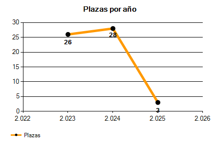 En los siguientes gráficos se puede ver la evolución del número de convocatorias y plazas convocadas para la profesión de Diplomado/a en Barcelona de los últimos años pudiéndose observar una caída del 90,91% desde el año 2023 hasta el 2025 en número de convocatorias y una caída del 88,46% en número de plazas convocadas.