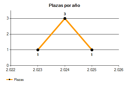 En los siguientes gráficos se puede ver la evolución del número de convocatorias y plazas convocadas para la profesión de Director de la Banda de Música en Madrid de los últimos años pudiéndose observar un crecimiento y una caída del 0,00% desde el año 2023 hasta el 2025 en número de convocatorias y un crecimiento y una caída del 0,00% en número de plazas convocadas.