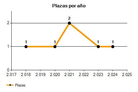 En los siguientes gráficos se puede ver la evolución del número de convocatorias y plazas convocadas para la profesión de Director de Servicios Sociales en Madrid de los últimos años pudiéndose observar una caída del 100,00% desde el año 2018 hasta el 2025 en número de convocatorias y una caída del 100,00% en número de plazas convocadas.