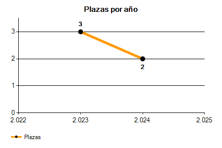 En los siguientes gráficos se puede ver la evolución del número de convocatorias y plazas convocadas para la profesión de Director Escuela Educación Infantil en Córdoba de los últimos años pudiéndose observar una caída del 100,00% desde el año 2023 hasta el 2026 en número de convocatorias y una caída del 100,00% en número de plazas convocadas.