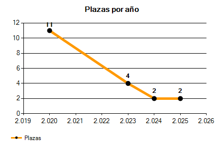 En los siguientes gráficos se puede ver la evolución del número de convocatorias y plazas convocadas para la profesión de Educador en Almería de los últimos años pudiéndose observar una caída del 50,00% desde el año 2020 hasta el 2025 en número de convocatorias y una caída del 81,82% en número de plazas convocadas.