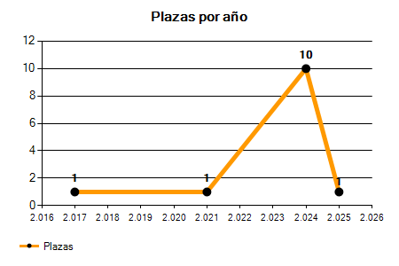 En los siguientes gráficos se puede ver la evolución del número de convocatorias y plazas convocadas para la profesión de Educador en Balears de los últimos años pudiéndose observar un crecimiento y una caída del 0,00% desde el año 2017 hasta el 2025 en número de convocatorias y un crecimiento y una caída del 0,00% en número de plazas convocadas.