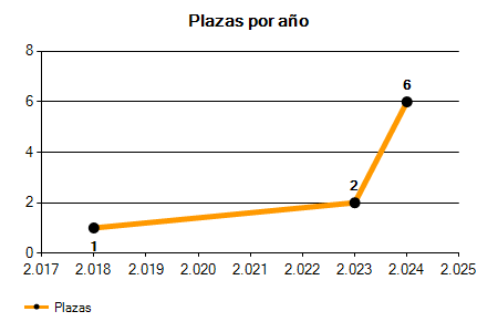 En los siguientes gráficos se puede ver la evolución del número de convocatorias y plazas convocadas para la profesión de Educador en Cádiz de los últimos años pudiéndose observar una caída del 100,00% desde el año 2018 hasta el 2025 en número de convocatorias y una caída del 100,00% en número de plazas convocadas.